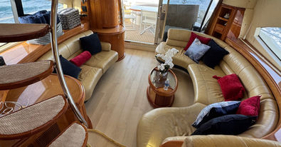 From the moment you step aboard, you’re surrounded by elegance. Enjoy expansive outdoor decks perfect for sunbathing and socializing, a spacious flybridge with panoramic Gulf views, and a beautifully appointed, air-conditioned salon for relaxing in comfort. Plush seating, refined interiors, and premium amenities create the perfect setting for an elevated day on the water.